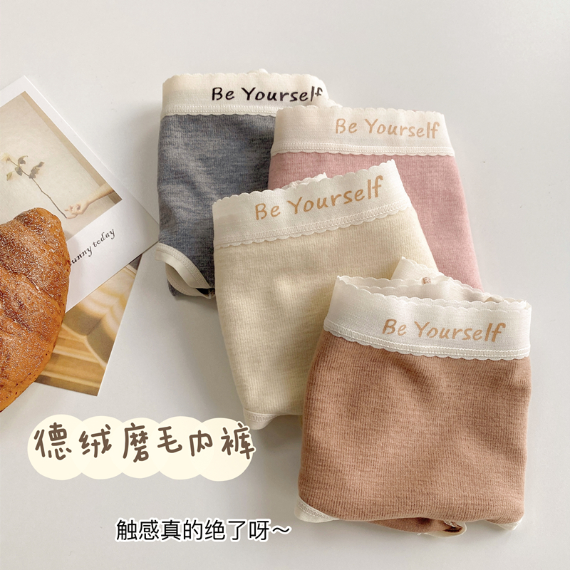 【产品名称:秋冬德绒羊毛自发热磨毛无痕内裤女士全棉纯棉裆中腰少女字母腰】