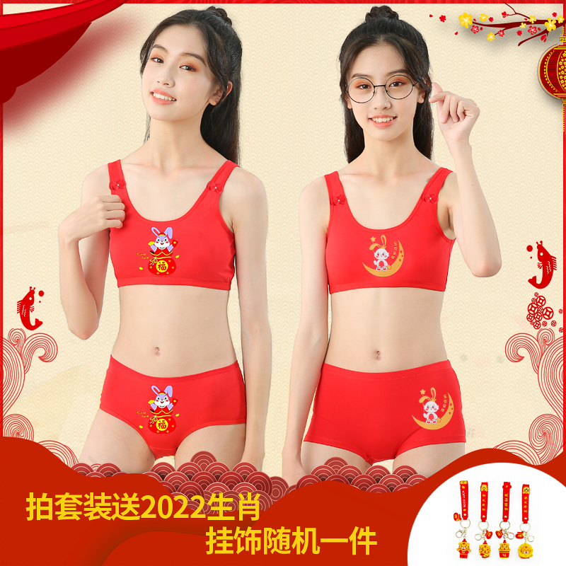 【产品名称:女童本命年红色内衣套装纯棉12岁属兔中大童13少女发育期文胸内裤】