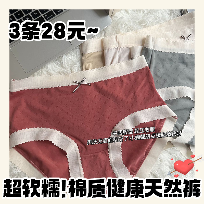 【产品名称:松软云朵 女士纯棉无缝亲肤全棉柔软少女抗菌中腰棉质无痕内裤女】