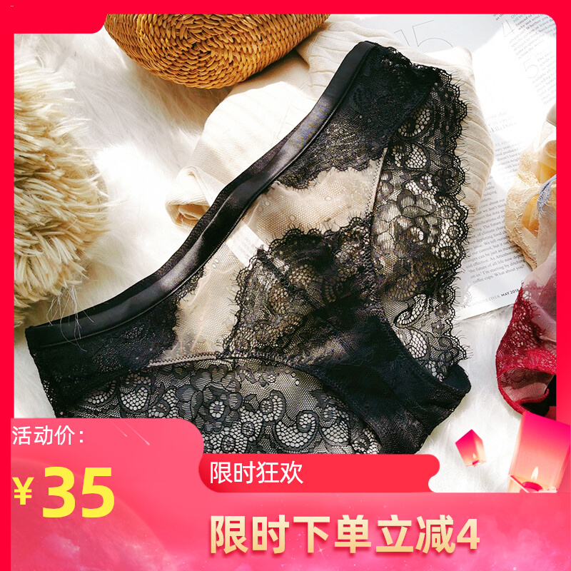 【产品名称:蕾丝内裤女款法式复古女士半透明纯欲低腰火辣舒适性感提臀三角裤】