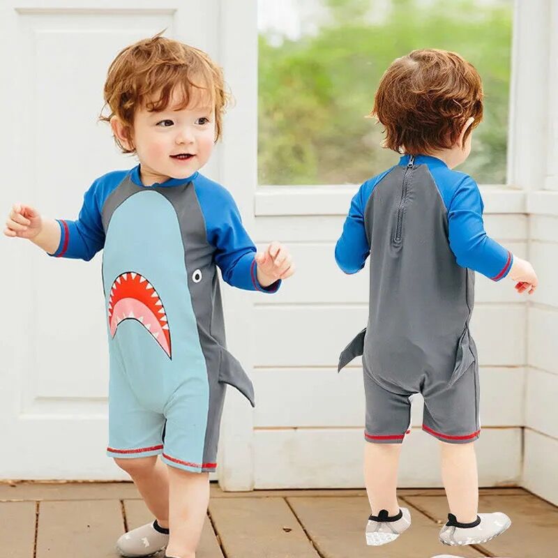【产品名称:儿童泳衣中小童男孩速干衣鲨鱼恐龙温泉2-3-5-6岁4宝宝连体游泳衣】