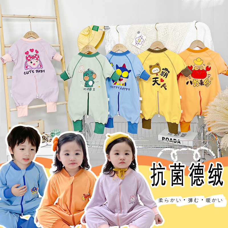 【产品名称:22新款婴儿德绒睡袋儿童春秋连体睡衣男女宝宝四季通用分腿防踢被】