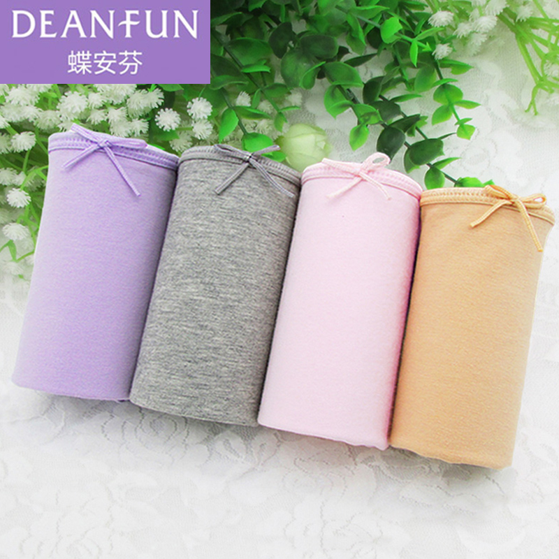 【产品名称:4条蝶安芬内裤女经典纯色弹力中高腰平角三角无痕女士底裤纯棉975】
