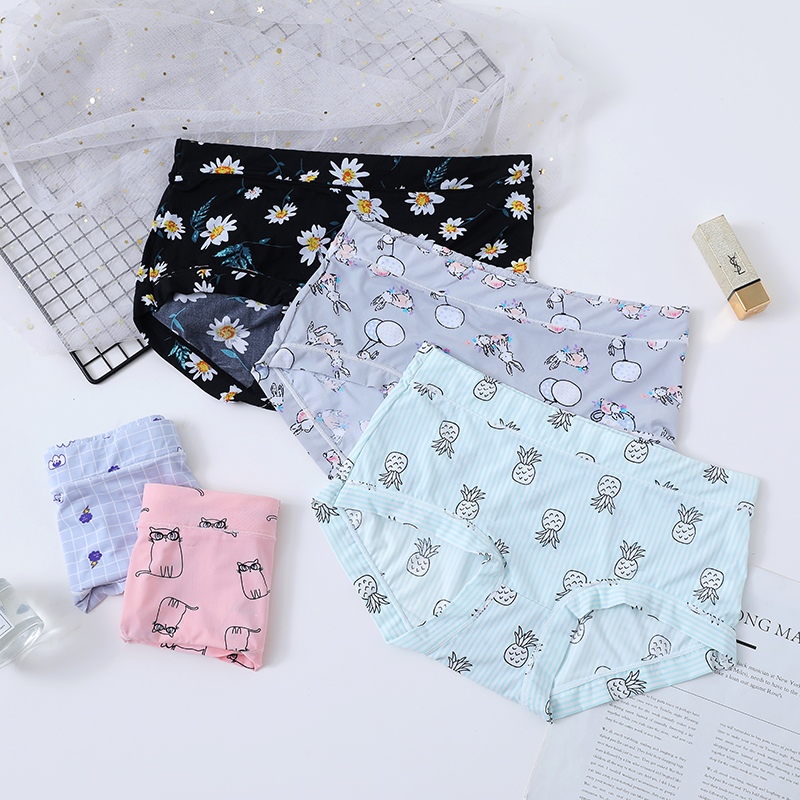 【产品名称:中腰冰丝内裤女士卡通印花牛奶丝滑柔软包臀舒适少女三角裤头可爱】