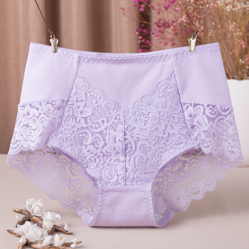 【产品名称:200斤女士纯棉中腰薄款内裤女大码夏季女款紫色性感无痕胖mm蕾丝】