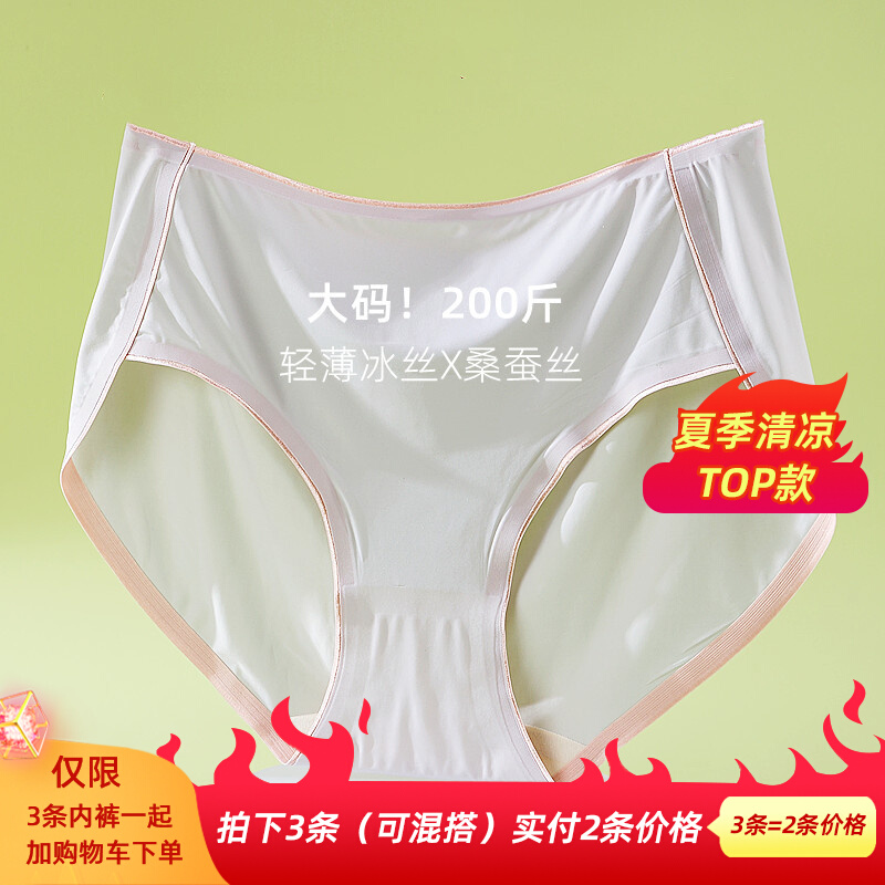 【产品名称:大码内裤女冰丝速干胖mm200斤高腰无痕高叉运动女士内裤蚕丝抗菌】