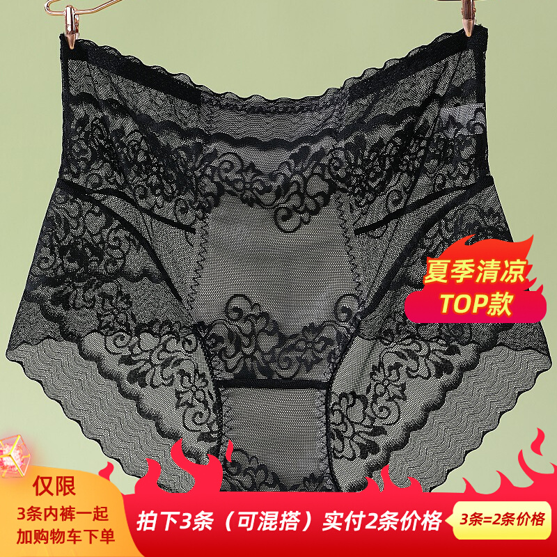 【产品名称:时尚高腰蕾丝内裤女士大码胖MM200斤性感提臀无痕桑蚕丝抗菌轻塑】
