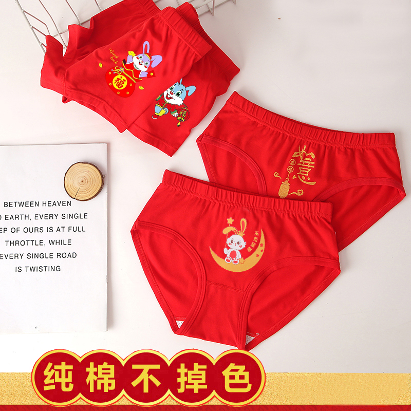 【产品名称:女童本命年内裤纯棉三角不夹PP儿童学生12岁男孩大红色平角裤兔年】