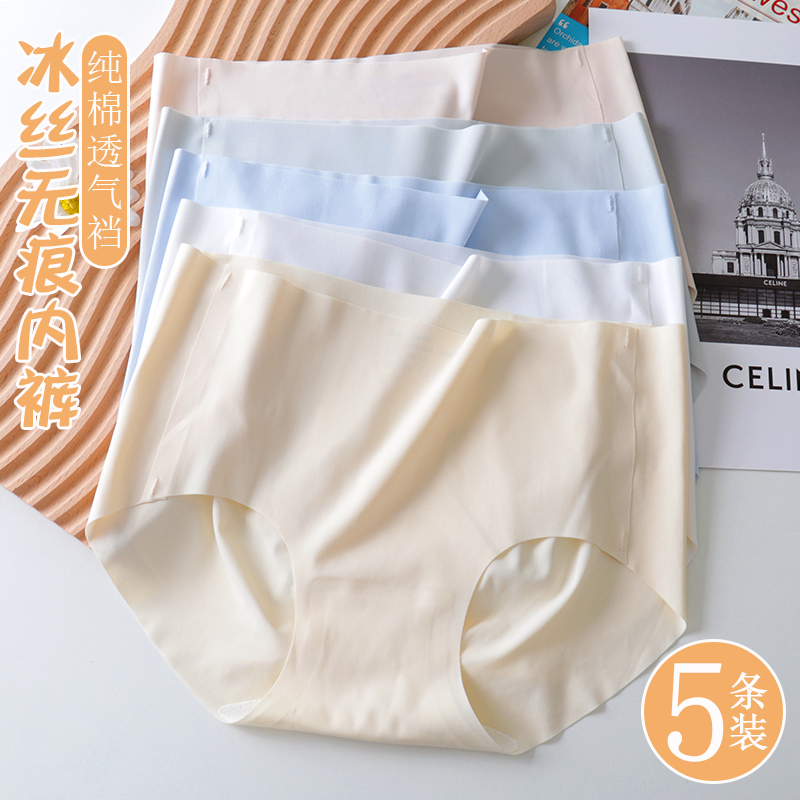 【产品名称:冰丝内裤女纯棉100%全棉裆夏季薄款透气无痕裸感中腰少女士生短裤】