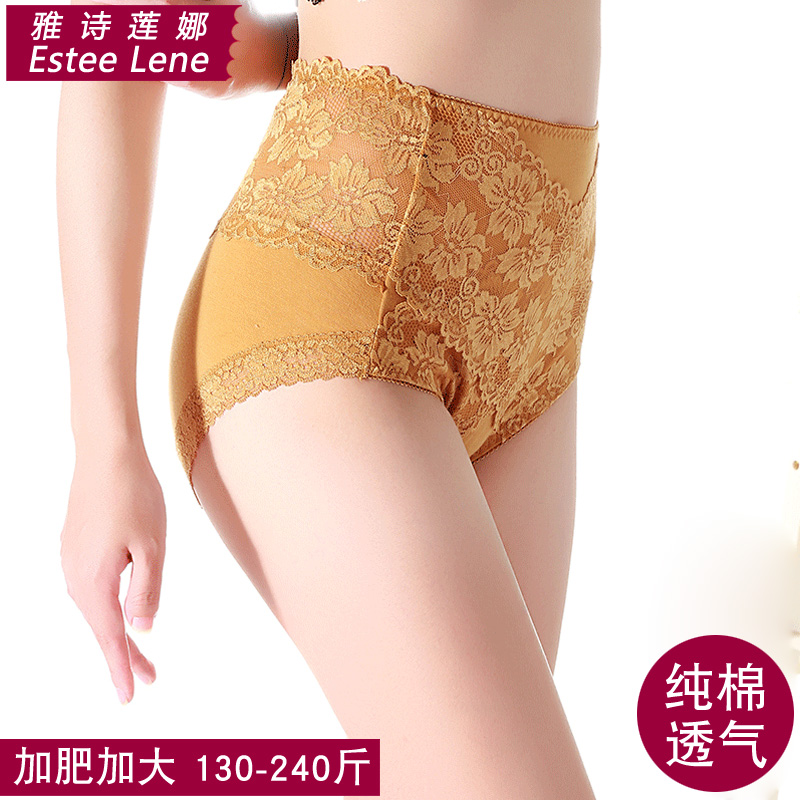【产品名称:时尚性感高腰蕾丝大码130-240斤包臀胖MM200斤三角女士内裤加大肥】