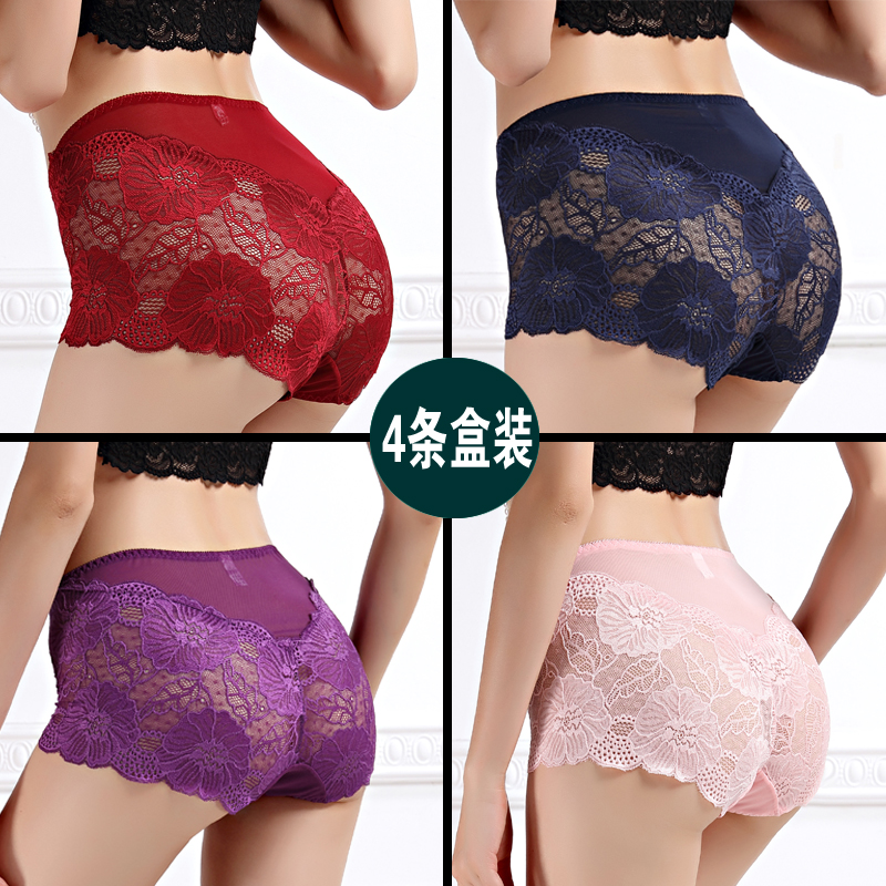 【产品名称:4条装春夏季女士内裤 纯棉大码中高腰莫代尔蕾丝女透气收腹三角裤】