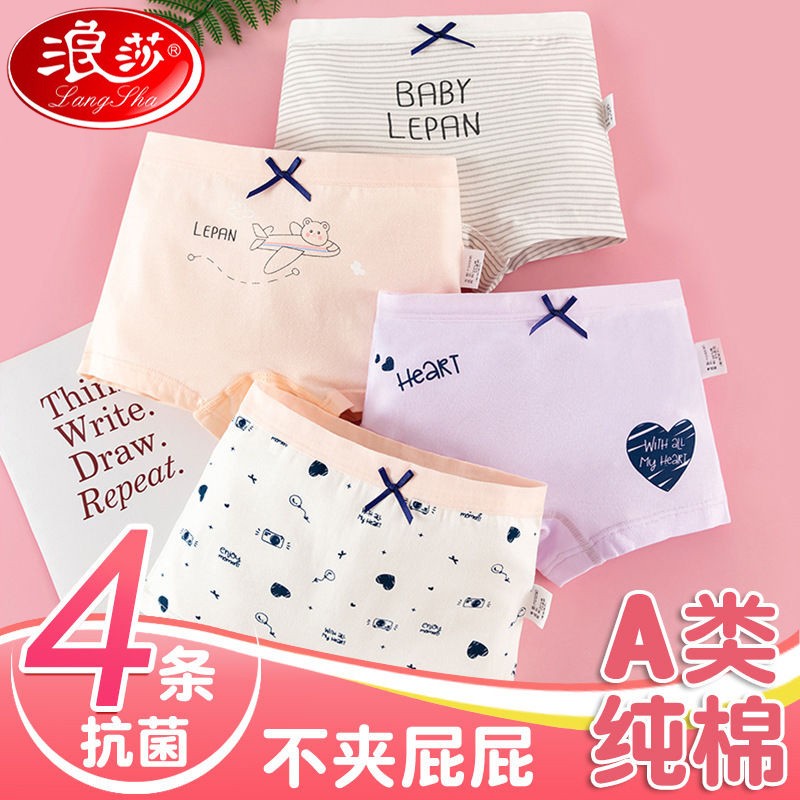 【产品名称:浪莎儿童内裤女童纯棉短裤透气平角裤薄款全棉中大童女孩四角裤】
