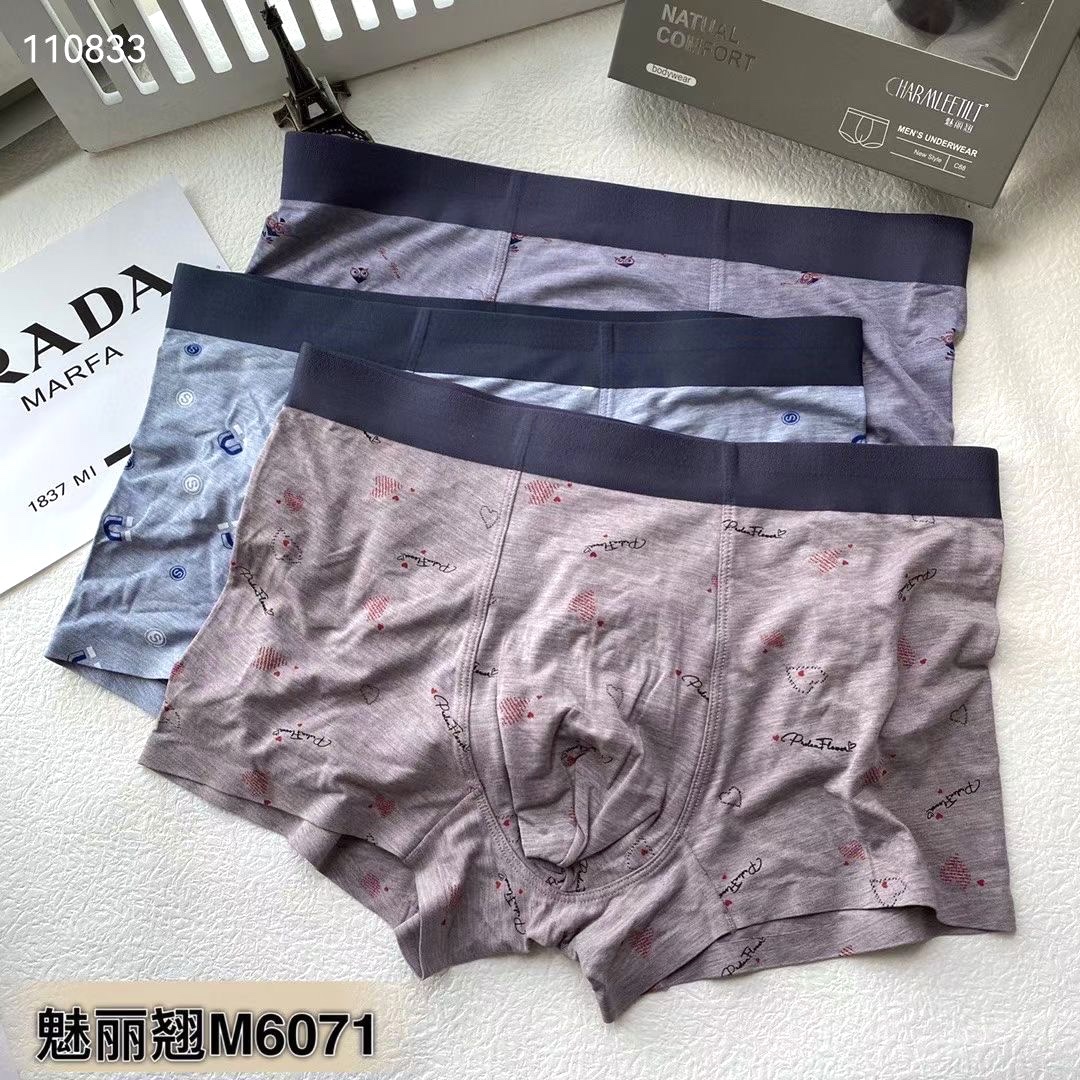 【产品名称:魅丽翘精品3条盒装无痕莫代尔舒适平角内裤男士抗菌棉裆四角裤头】
