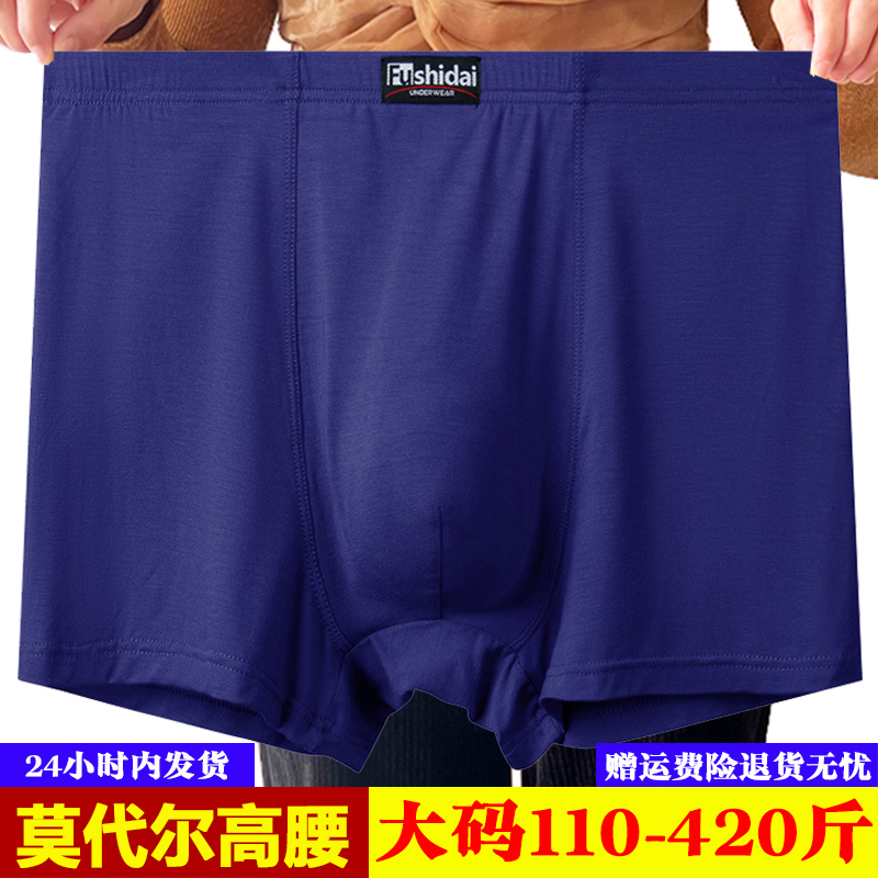 【产品名称:男士高腰肥佬平角内裤特大码420斤胖子四角裤莫代尔加肥加大短裤】