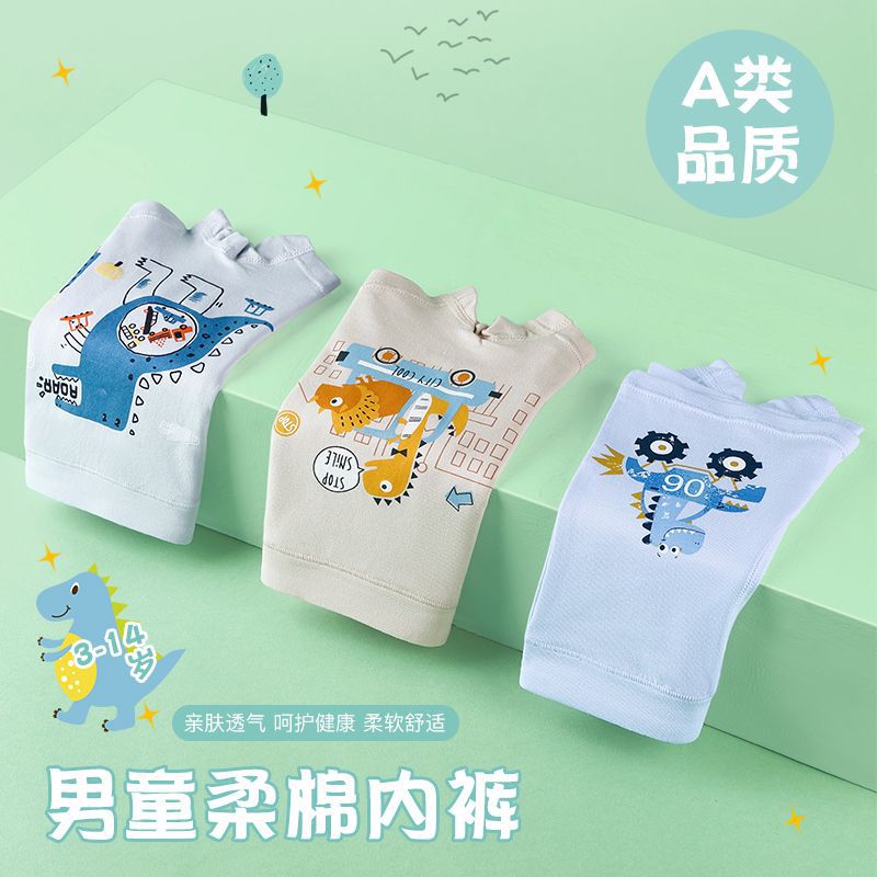 批发A类纯棉小中大男童内裤纯棉男童四角裤头卡通印花男童内裤
