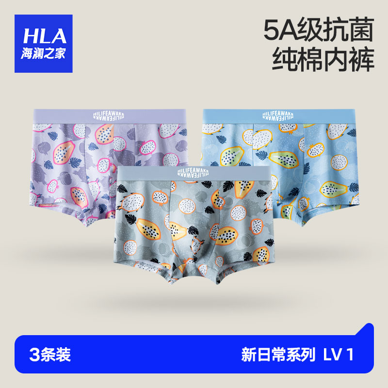 【产品名称:HLA/海澜之家男士平角内裤纯棉抗菌透气舒适吸汗印花高弹四角短裤】