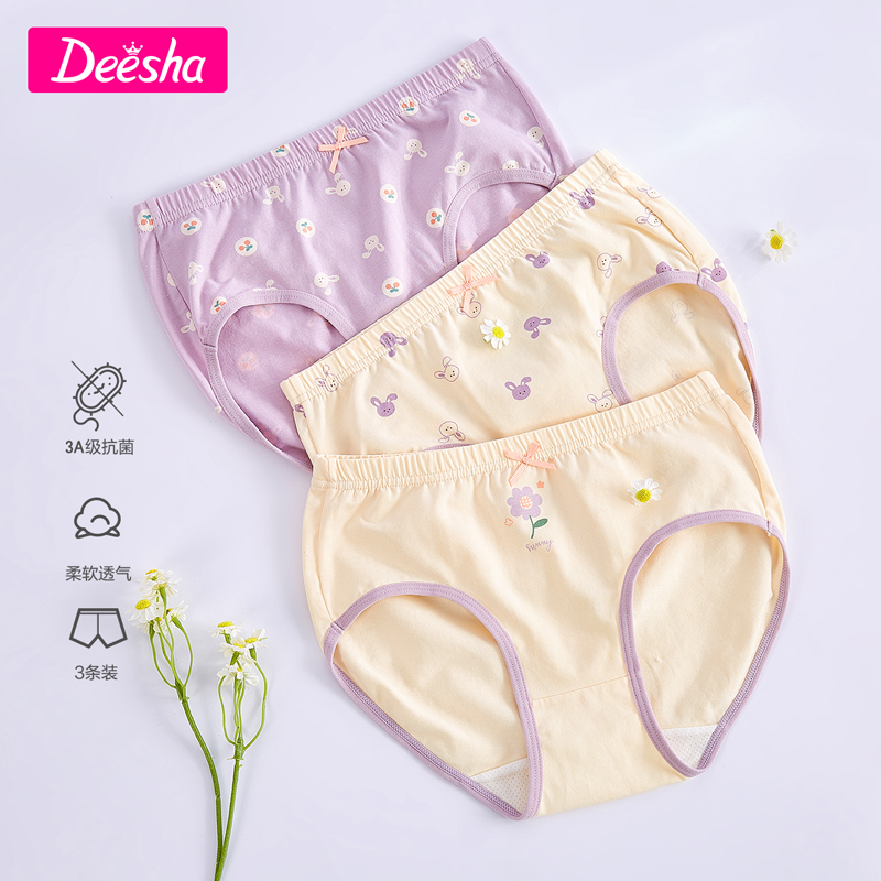 【产品名称:笛莎官方童装女童2023年夏新款可爱印花抑菌三角小内裤3条组合装】