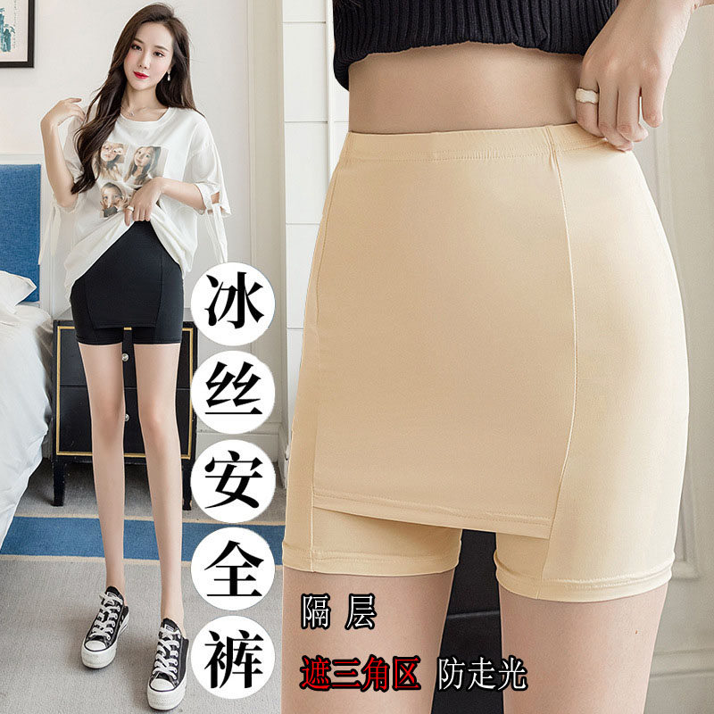 【产品名称:夏季薄款冰丝无痕安全裤隔层遮挡三角区防走光高腰女速干平角内裤】
