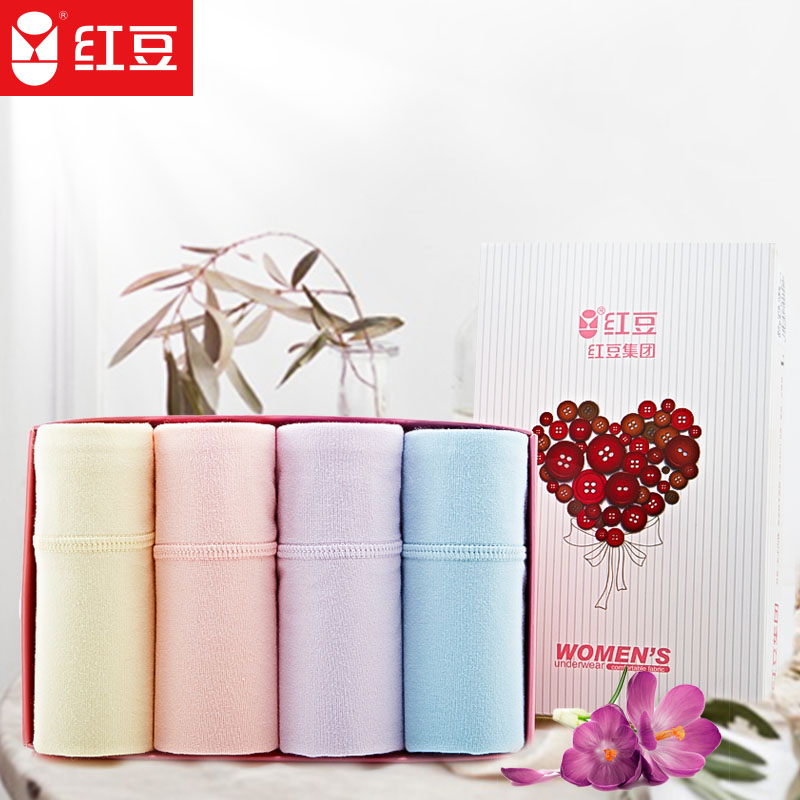 【产品名称:4条礼盒装 红豆女士纯棉纯色内裤性感可爱少女中腰全棉三角短裤头】