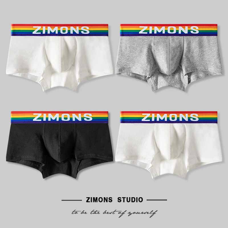 【产品名称:3条装ZIMONS男士平角内裤彩虹腰带四角U凸囊袋纯色棉白色个性潮流】
