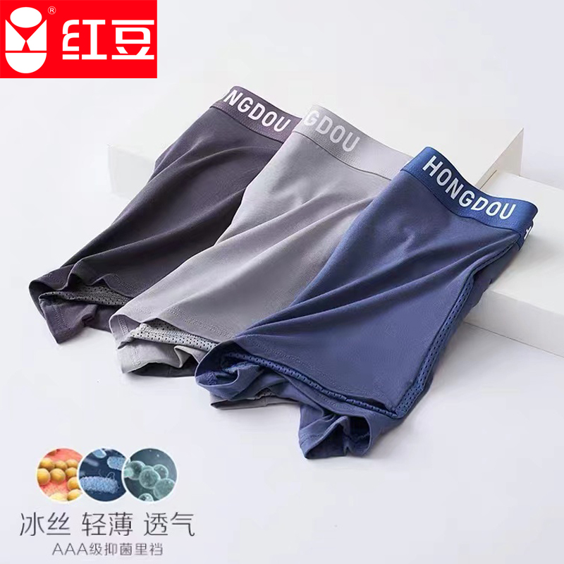 【产品名称:3条装 红豆男士平角内裤冰丝抑菌夏季透气无痕网眼高弹四角短裤头】