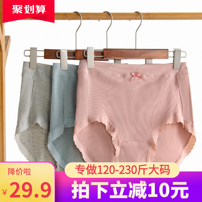 【产品名称:大码女士三角裤内裤螺纹棉高腰收腹胖mm不卡裆蕾丝简约200斤内裤】