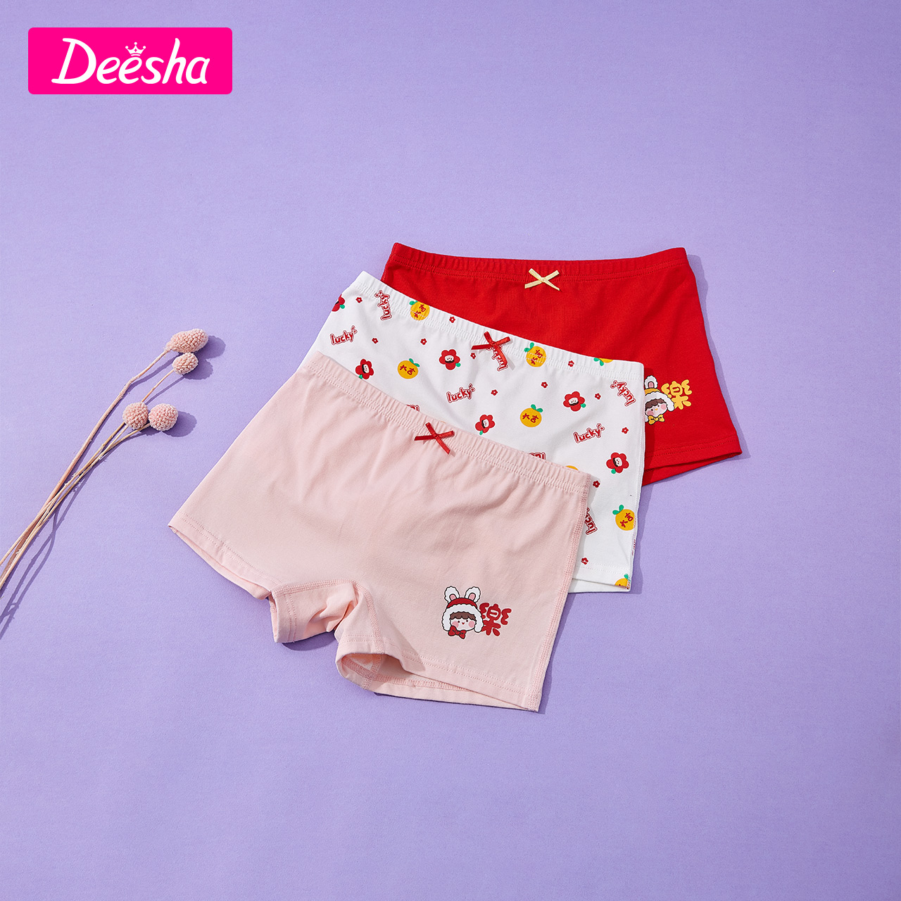 【产品名称:笛莎女童小内裤2023春辛苦可爱印花平角装新年本命年内裤3条组合】