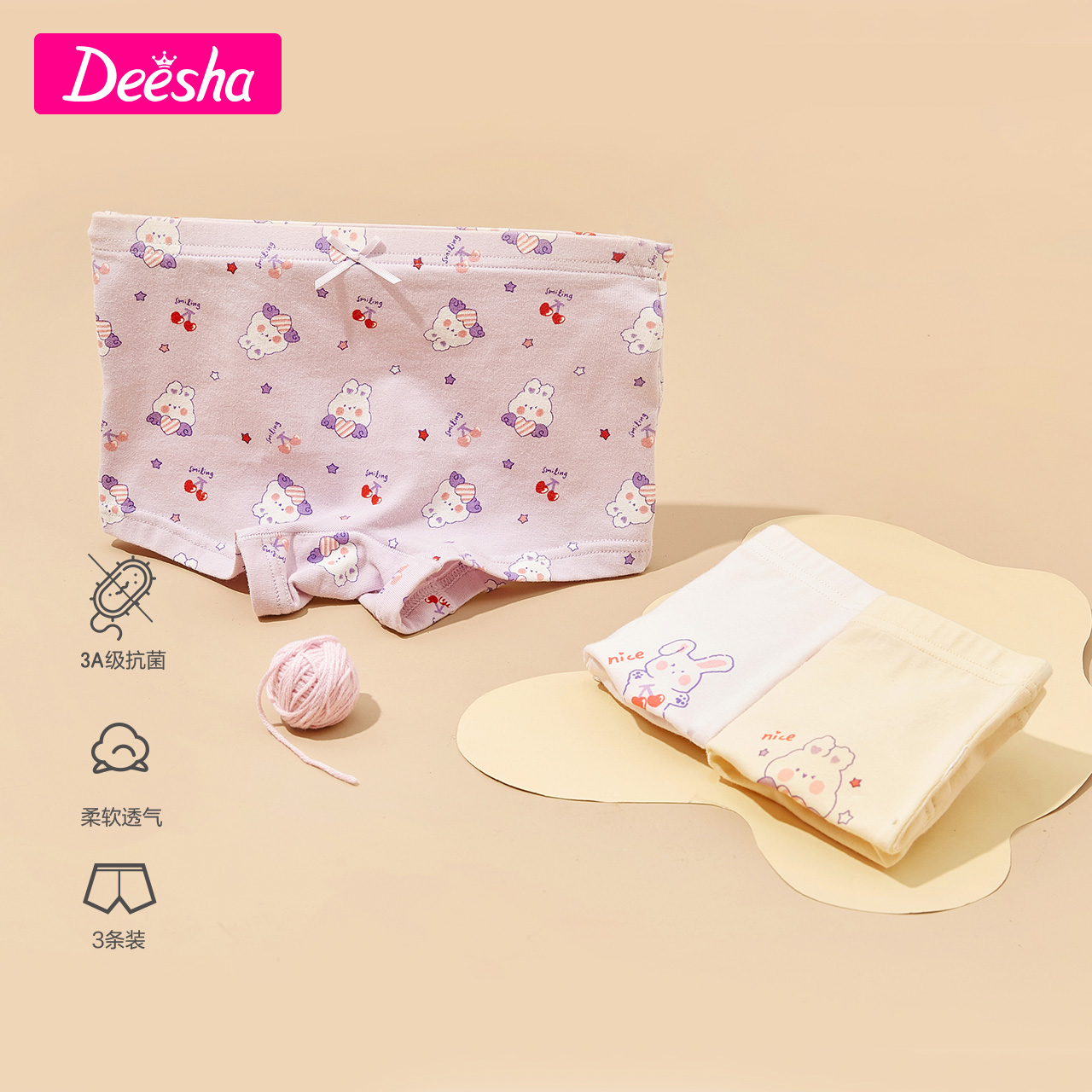 【产品名称:笛莎童装女童小内裤2023春秋新款女孩舒适贴身平角内裤3条组合装】