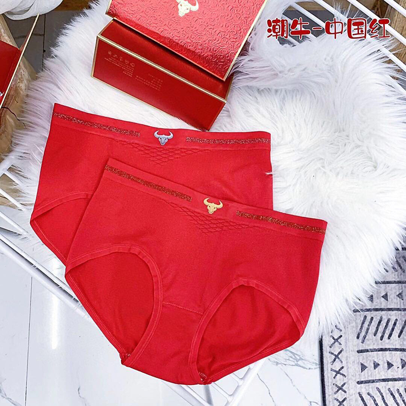 【产品名称:潮牛情侣内裤平角男士大红本命底裤女士牛年红色三角裤抗菌裆透气】