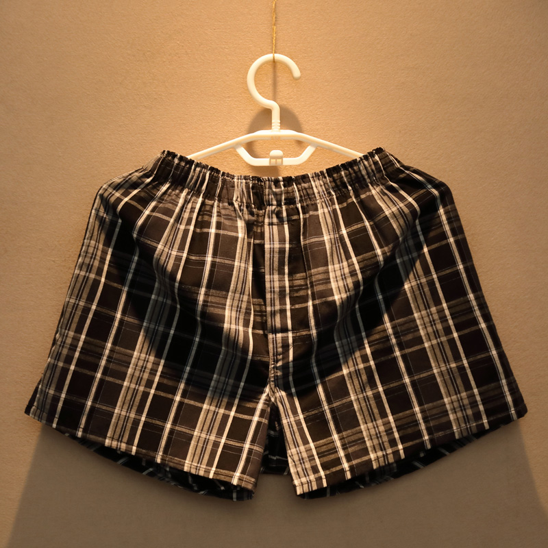 【产品名称:3条宽松男士内裤男纯棉阿罗平角裤日系英伦条纹格子休闲四角短裤】