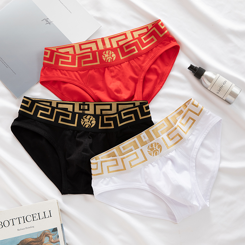 【产品名称:3件磨蹭先生男士内裤纯棉三角裤低腰性感红色内裤男潮流青年潮牌】