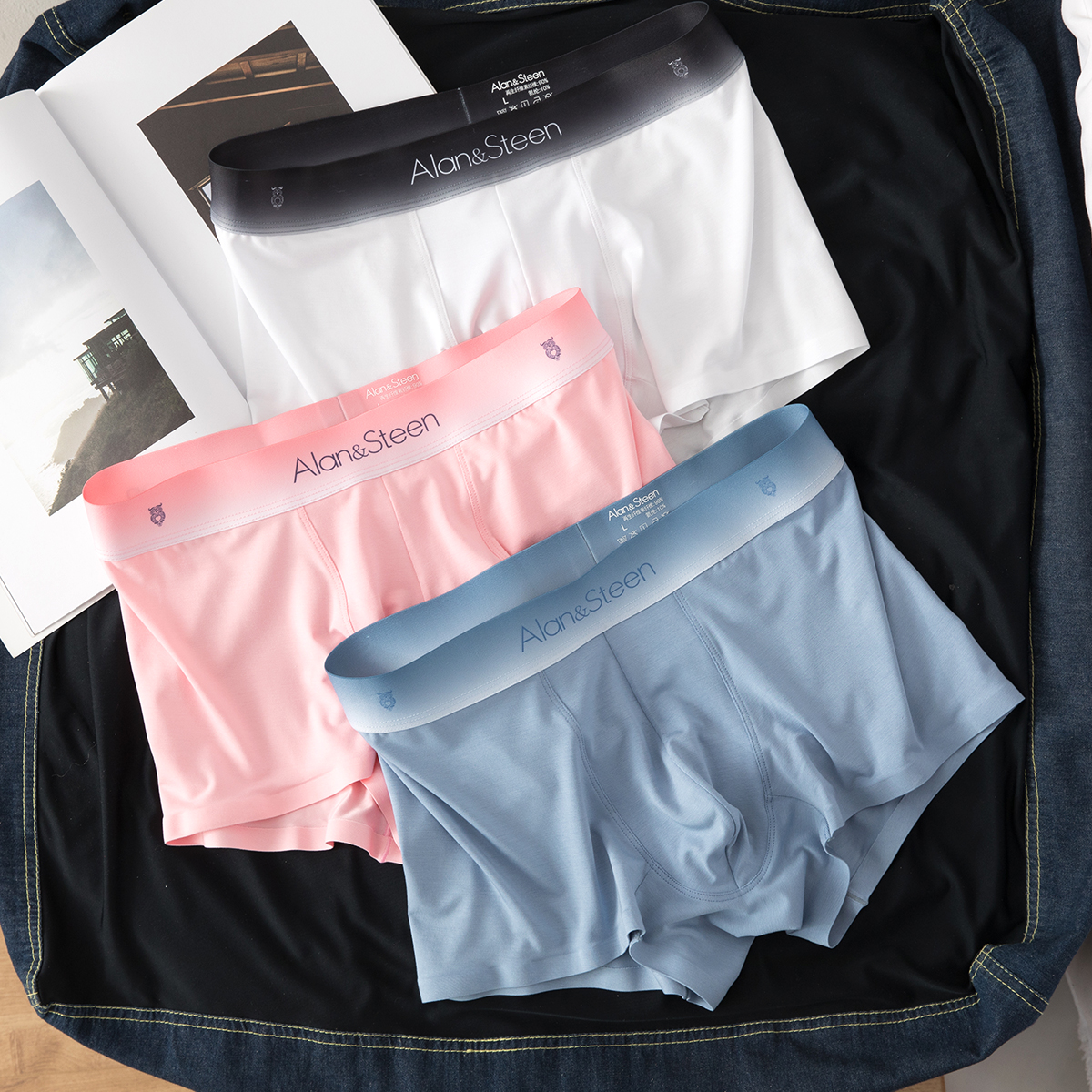 【产品名称:磨蹭先生莫代尔男士内裤冰丝平角裤抗菌薄款透气防夹臀四角短裤潮】
