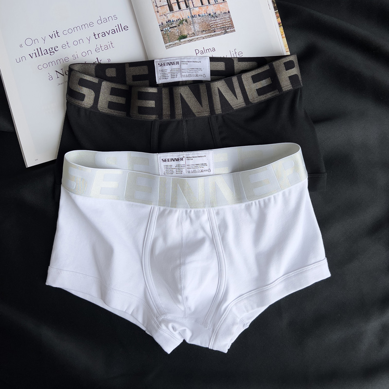 【产品名称:男士内裤男纯棉日系纯白色简约舒适透气平角裤青年U凸四角短裤头】