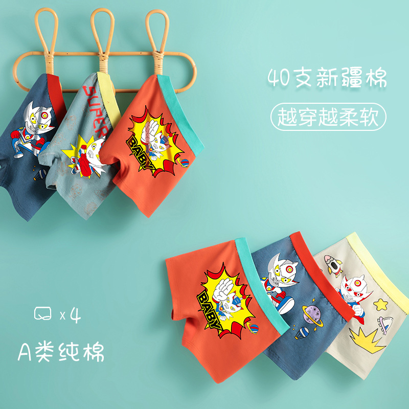 【产品名称:夏季薄款儿童男童平角内裤奥特曼100%纯棉全棉小中大童四角裤短裤】