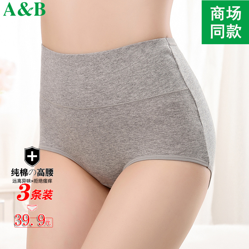 【产品名称:3条AB内裤女纯棉高腰提臀收腹裤加大码女士平角短裤全棉三角裤女】