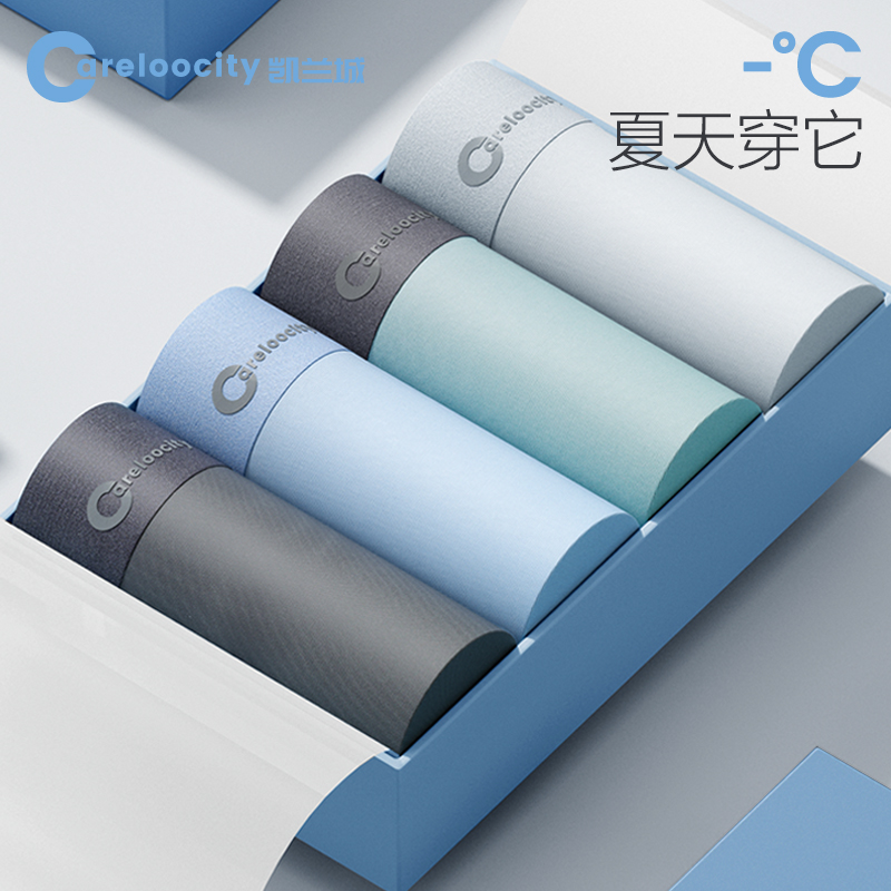 【产品名称:Careloocity凯兰城男士内裤男生冰丝凉感薄款无痕四角平角短裤头】
