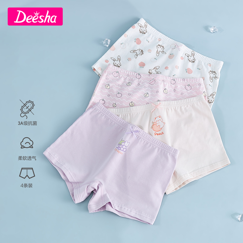 【产品名称:笛莎童装女童小内裤2023夏季新款可爱卡通图案平角内裤4条组合装】