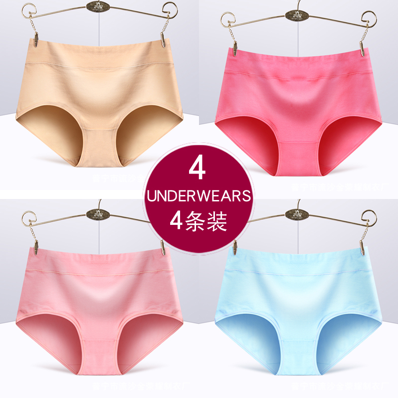【产品名称:4条中腰大码纯棉内裤女士透气全棉纯色简约收腹红色黑色无痕三角】