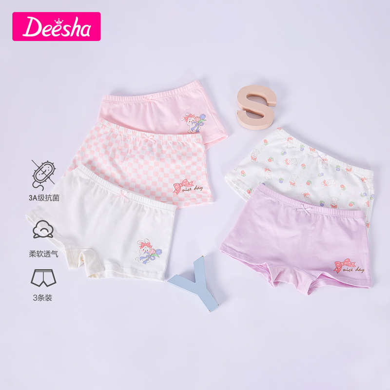 【产品名称:笛莎童装女童2023年夏装新款可爱印花舒适透气平角内裤5条组合装】