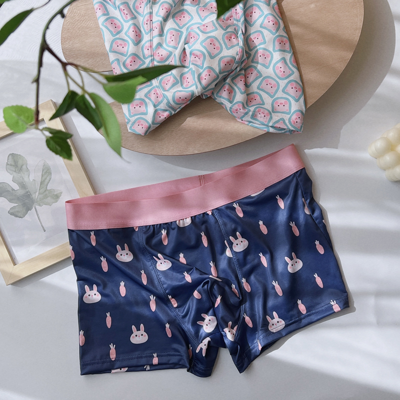 【产品名称:3条 日系可爱冰丝内裤男平角中腰性感卡通兔兔夏季冰凉四角舒适】