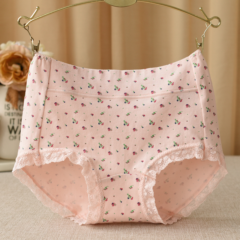 【产品名称:3条装内裤女纯棉中腰印花女士内裤舒适透气少女无痕全棉裆三角裤】
