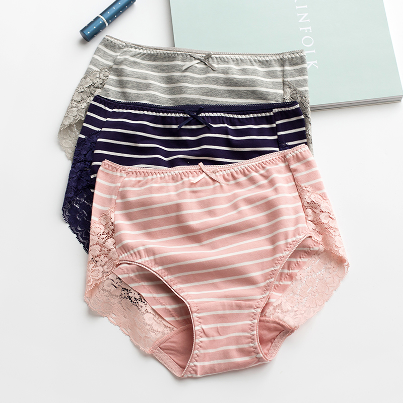 【产品名称:3条日系高腰女士内裤纯棉100%蕾丝边提臀收腹大码全棉面料三角裤】