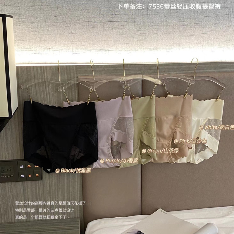 【产品名称:7536蕾丝轻压收腹裤夏季轻薄透气网纱高腰塑身包臀女士内裤抗菌裆】