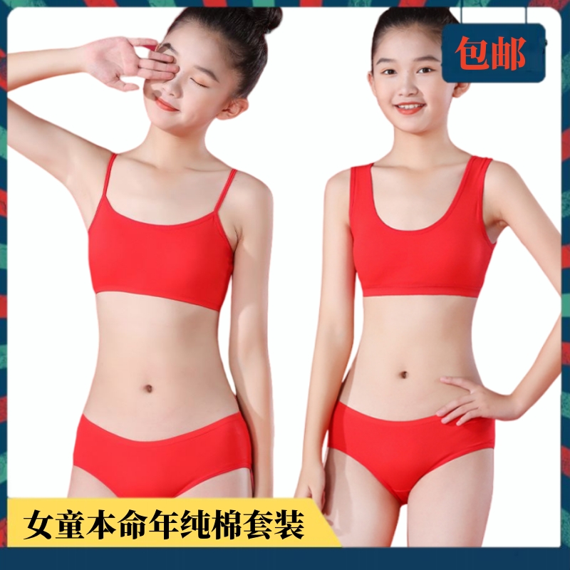 【产品名称:女童本命年内衣内裤套装12岁女孩内衣大红色纯棉吊带背心学生初中】