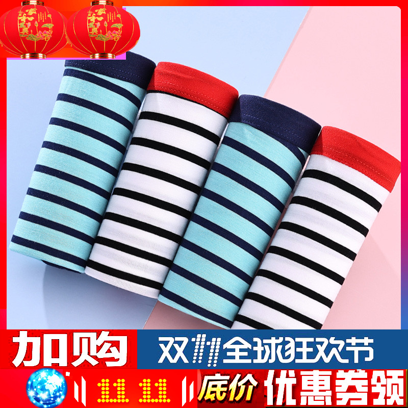 【产品名称:女士内裤莫代尔面料经典海军风条纹中腰三角裤时尚蝶安芬女生短裤】