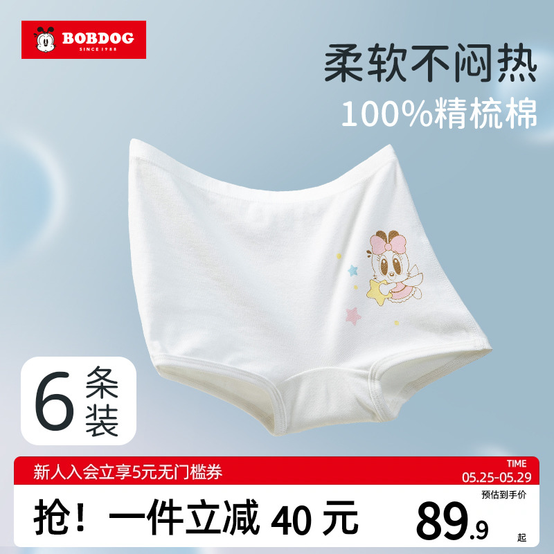【产品名称:巴布豆儿童内裤女宝宝全棉短裤男童纯棉5A抗菌不夹屁屁平角裤6条】