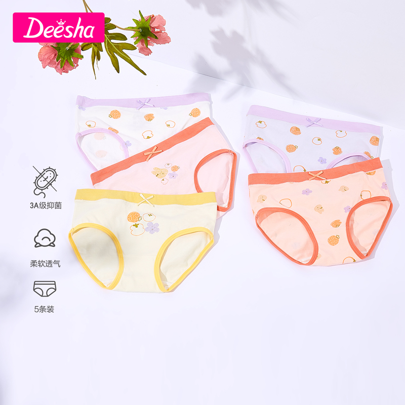 【产品名称:笛莎官方童装女童内裤2023年夏装新款可爱印花三角内裤5条组合装】