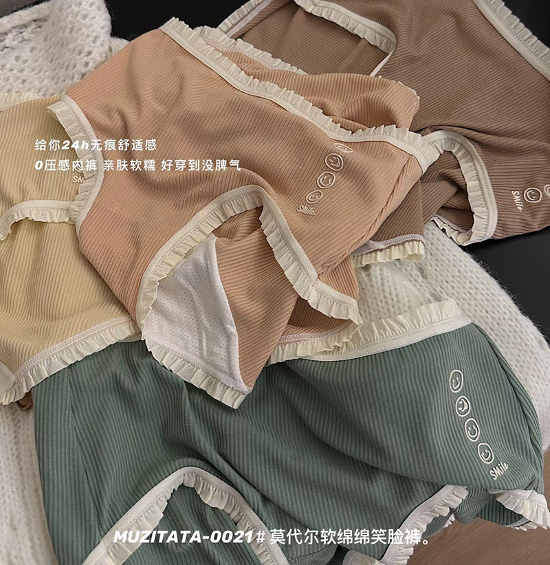 【产品名称:Muzitata0021莫代尔软绵绵笑脸内裤中腰女士简约透气舒适三角裤头】