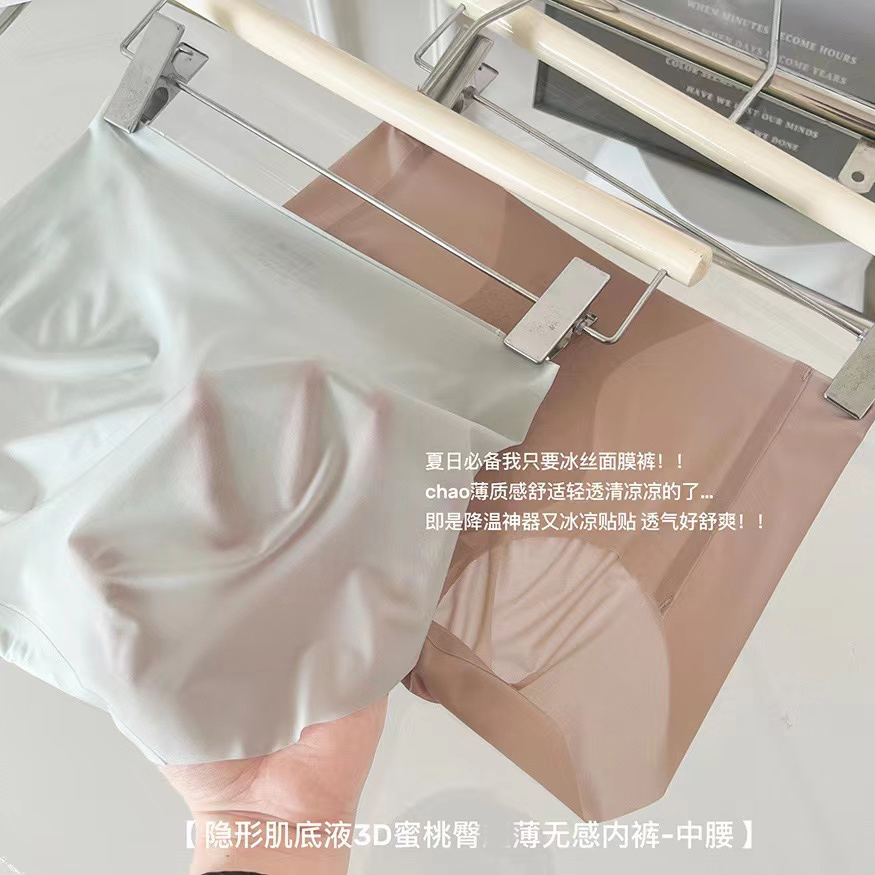 【产品名称:隐形肌底3D蜜桃臀内裤女士冰丝速干轻薄无痕无感性感纯色三角裤头】