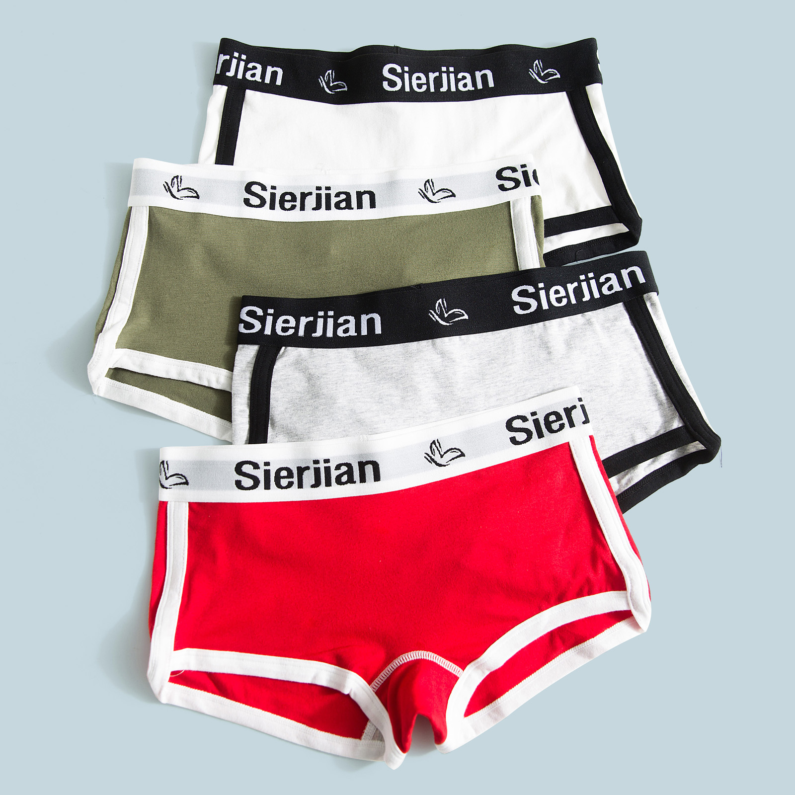 【产品名称:平角内裤女士纯棉全棉防走光四角裤字母运动舒适贴身无痕中腰短裤】